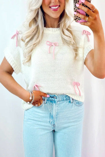Pink Bow Short Sleeve Sweater (Preorder)