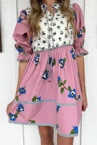 Pink Floral Puff Sleeve Dress (Preorder)