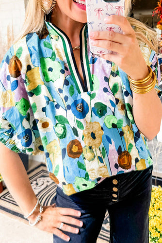 Ruffled Sleeve Floral Printed Top (Preorder)