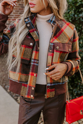 Plaid Flap Pocket Zip Up Jacket (Preorder)