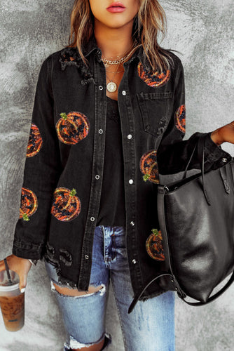 Sequin Pumpkin Denim Jacket (Preorder)