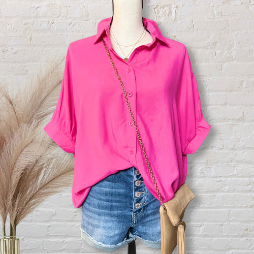 Oversized Pink Dolman Sleeve Button Down (Preorder)