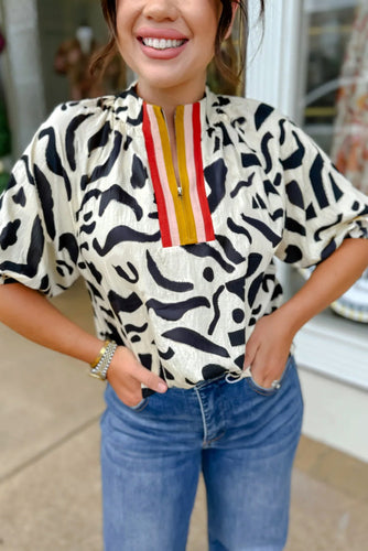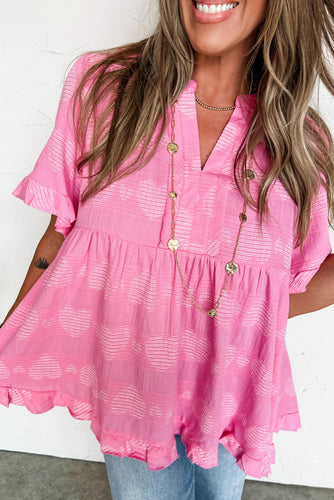 Red Ruffle Pink Contrast Blouse (Preorder)