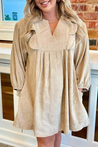 Mocha Striped Puff Sleeve Dress (Preorder)